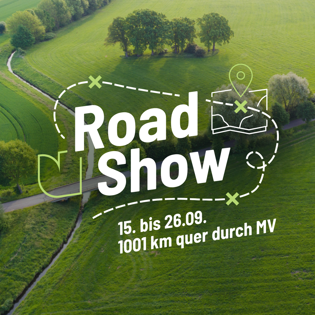 Die Initiative Zukunftshandeln MV geht auf Roadshow. Vom 15. bis 26. September könnt Ihr zukunftsfähige Akteure, Initiativen, Vereine, Unternehmen – euch!! – kennenlerne. Das vom MV Zukunftsrat entworfene Zukunftsprogramm für Mecklenburg- Vorpommern soll im Land vorgestellt und diskutiert werden.
